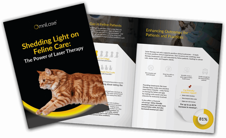 In this new eBook, learn how laser therapy – used every day in veterinary practice to safely and effectively treat a wide range of conditions and provide analgesia – can help veterinary professionals close this gap in feline care. As a gentle, non-invasive, and well-tolerated modality, discover how laser therapy supports a cat-friendly practice environment – encouraging higher treatment compliance, more consistent visits, and higher revenue.